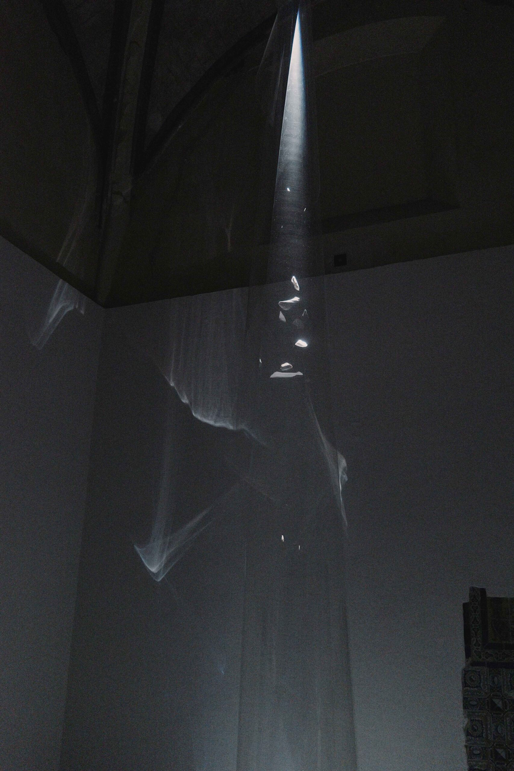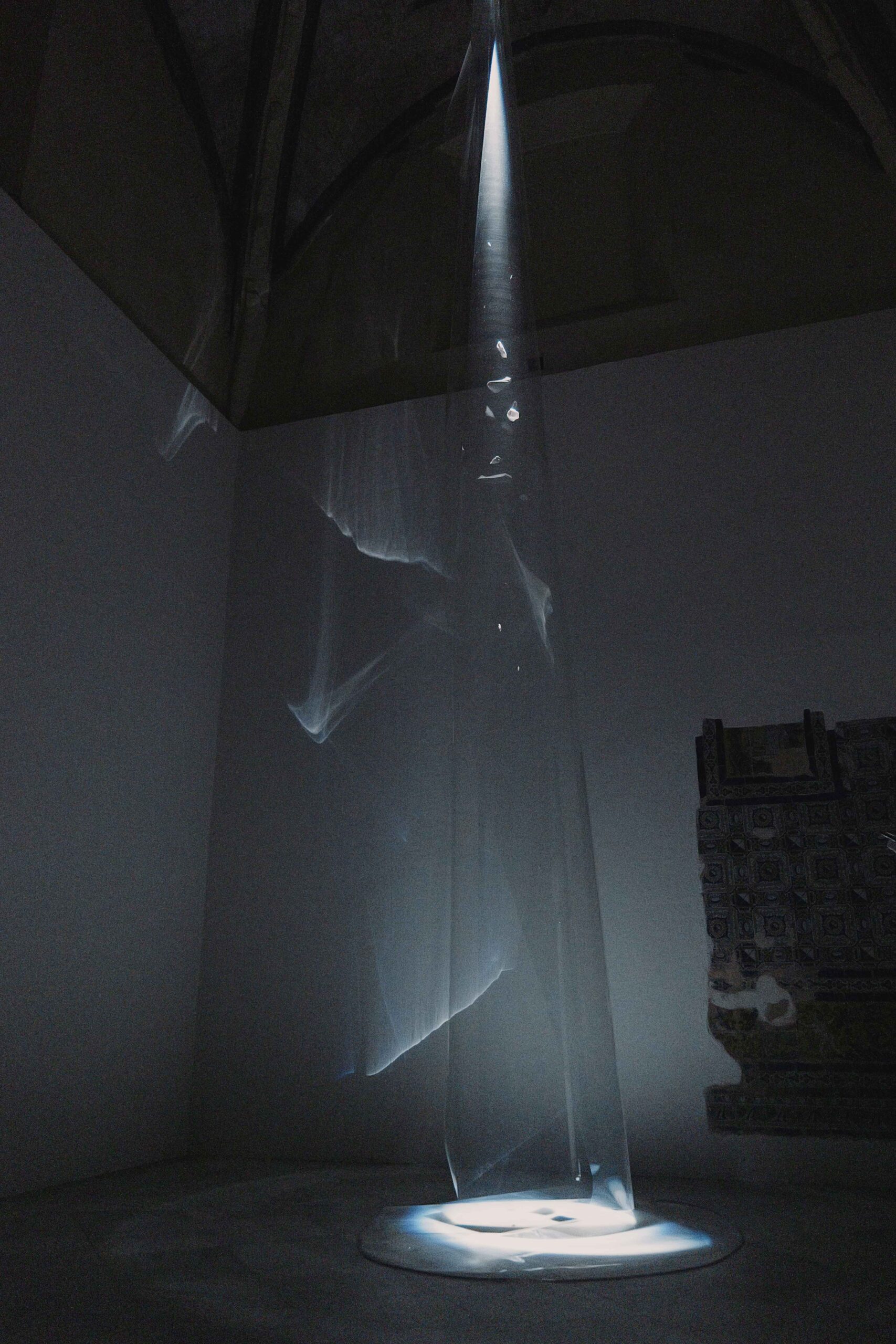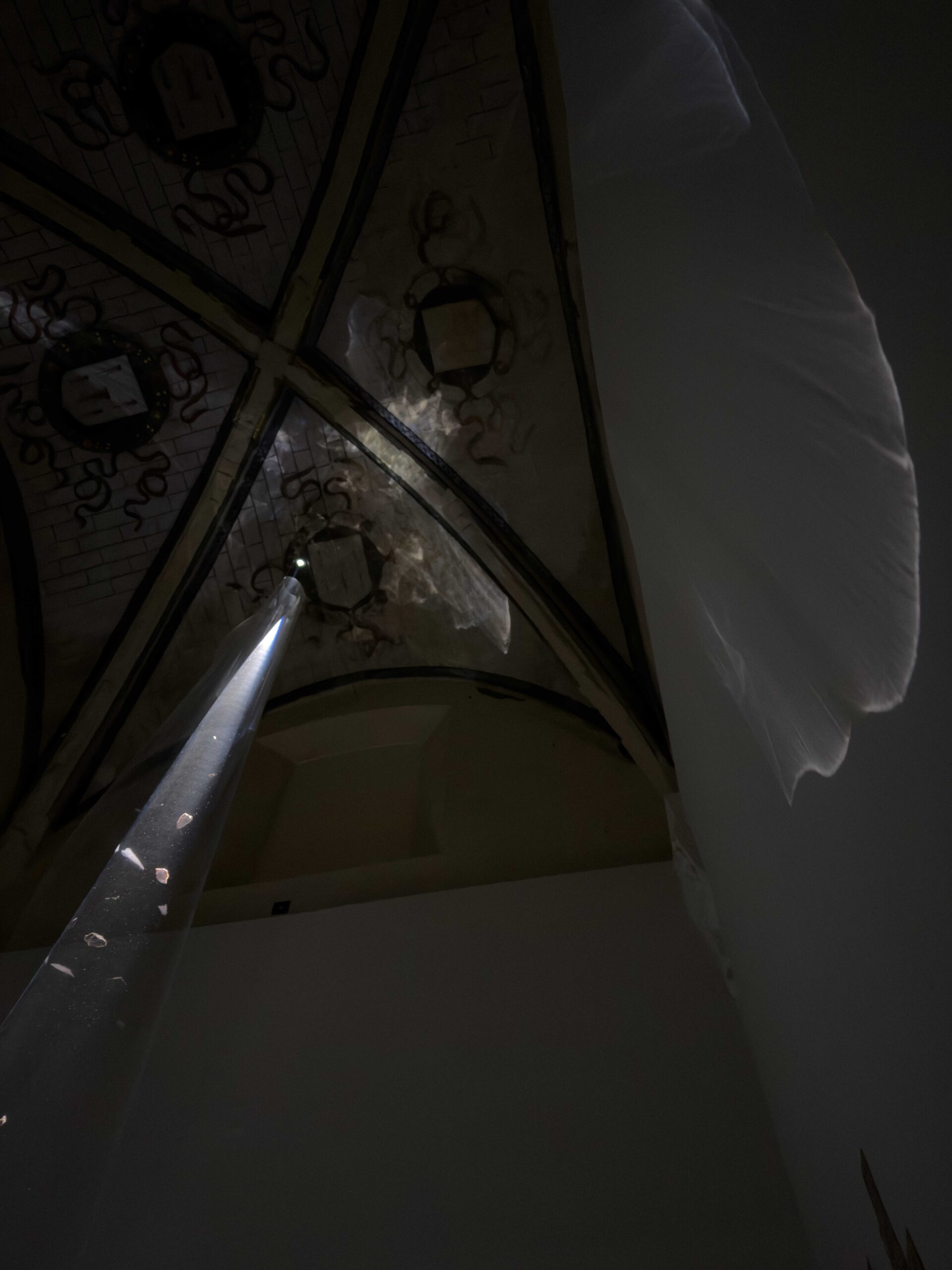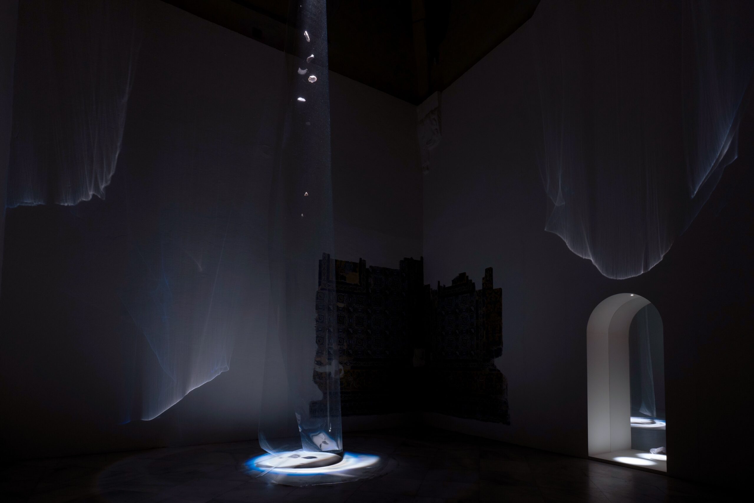 The Light Does Not Fill the Void, It Hollows It Out is a site-specific installation in the Chapel of San Bruno, created with special attention to the unique characteristics of the place, both physical and atmospheric, and focusing on two absences to make present the past of what we can no longer see.
